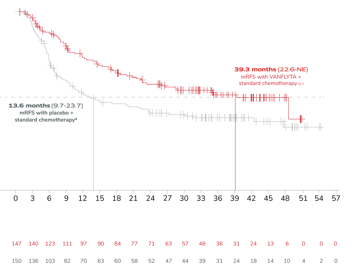 VANFLYTA provided superior overall survival vs standard chemotherapy alone1,4