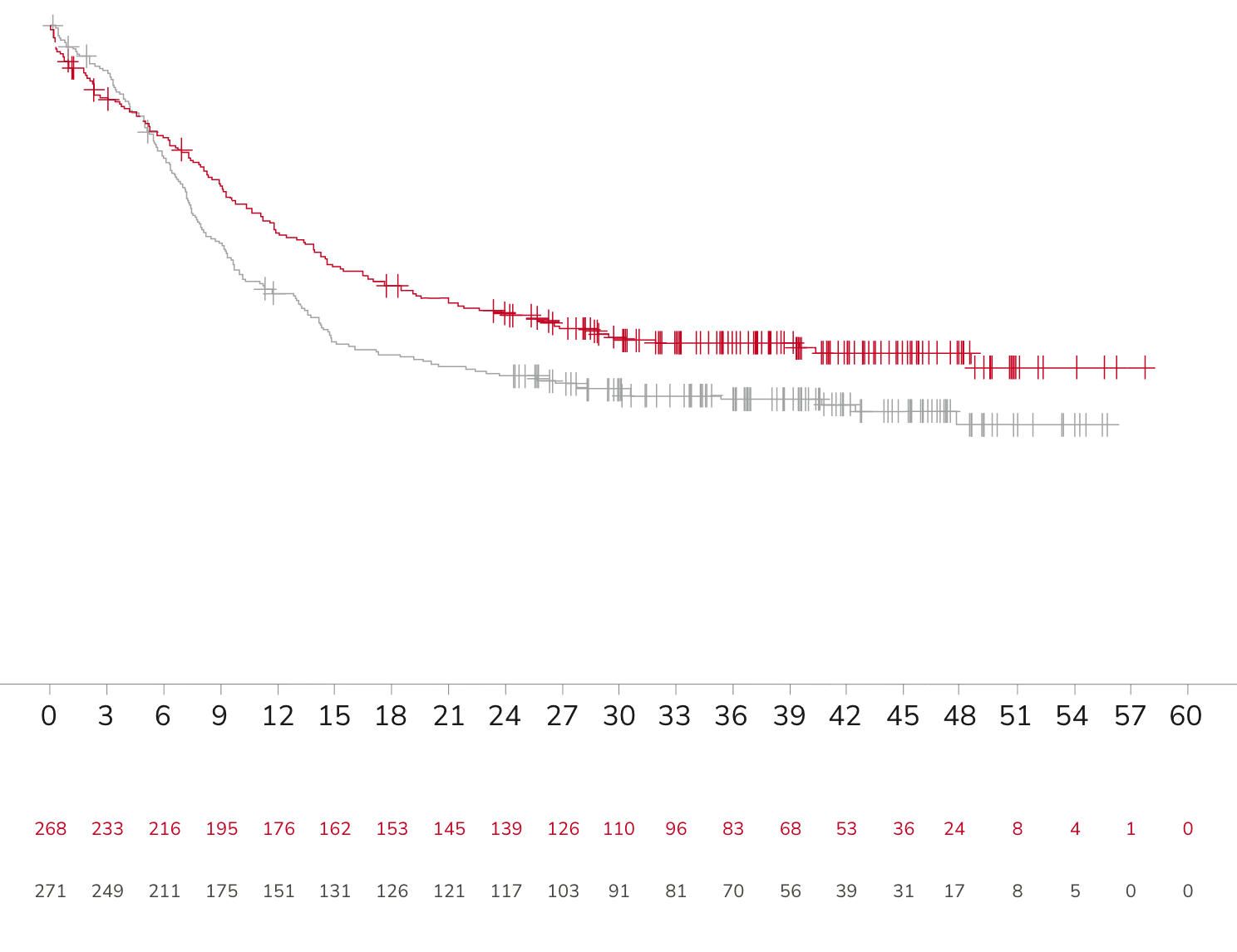 - Analysis on RFS, which was a prespecified exploratory outcome, was not powered to detect a difference in treatment effect between the 2 arms. Cautious interpretation is recommended, and no conclusions can be drawn from this data